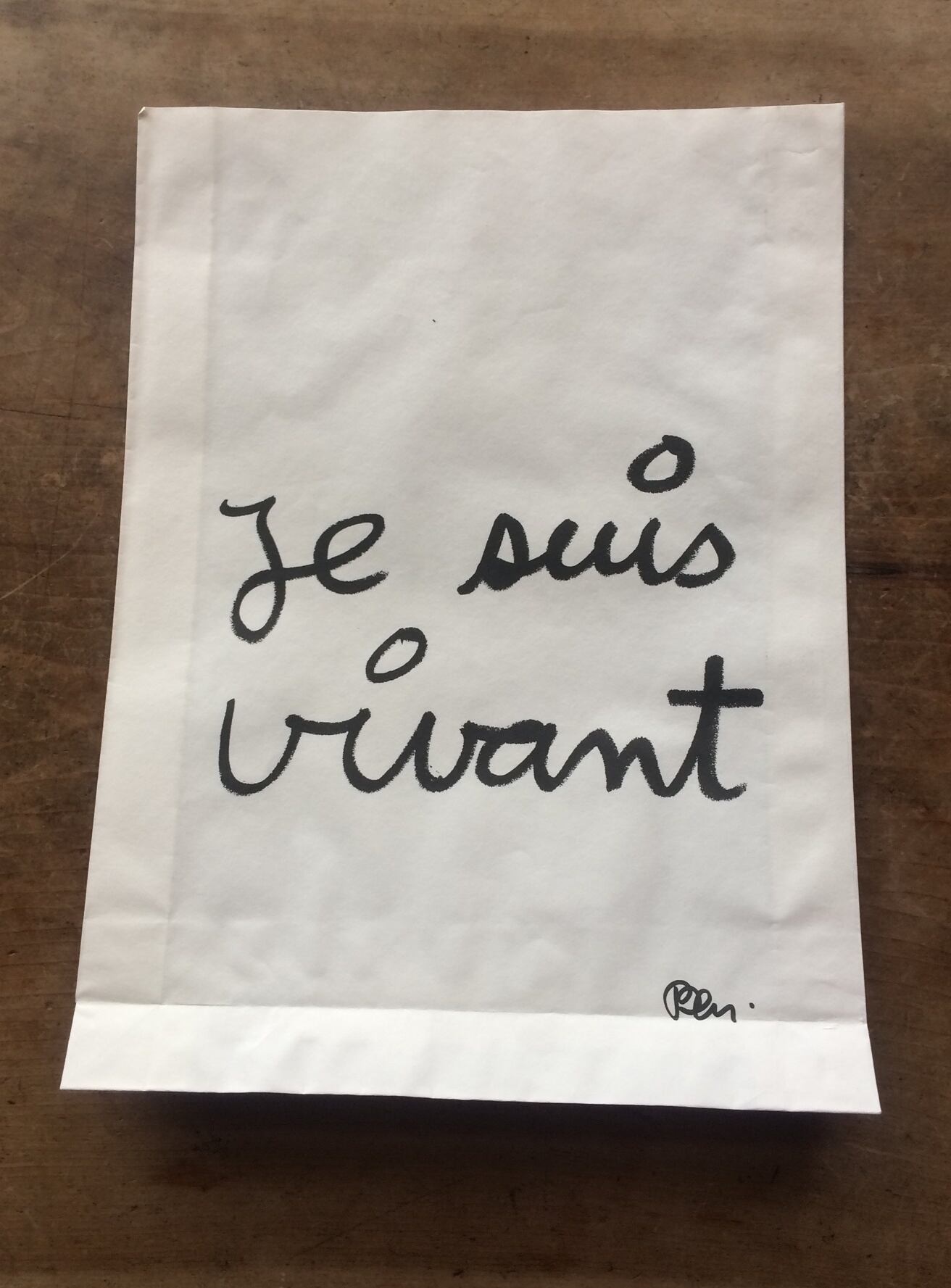今、フランスでは有名になって、彼のこの特徴ある文字が問いかけるメッセージが、文具やワインのラベルやiPhoneケースやらと・・・あらゆるところで見られるようになりました。フランスのお洒落相◯みつおといったところでしょうか。