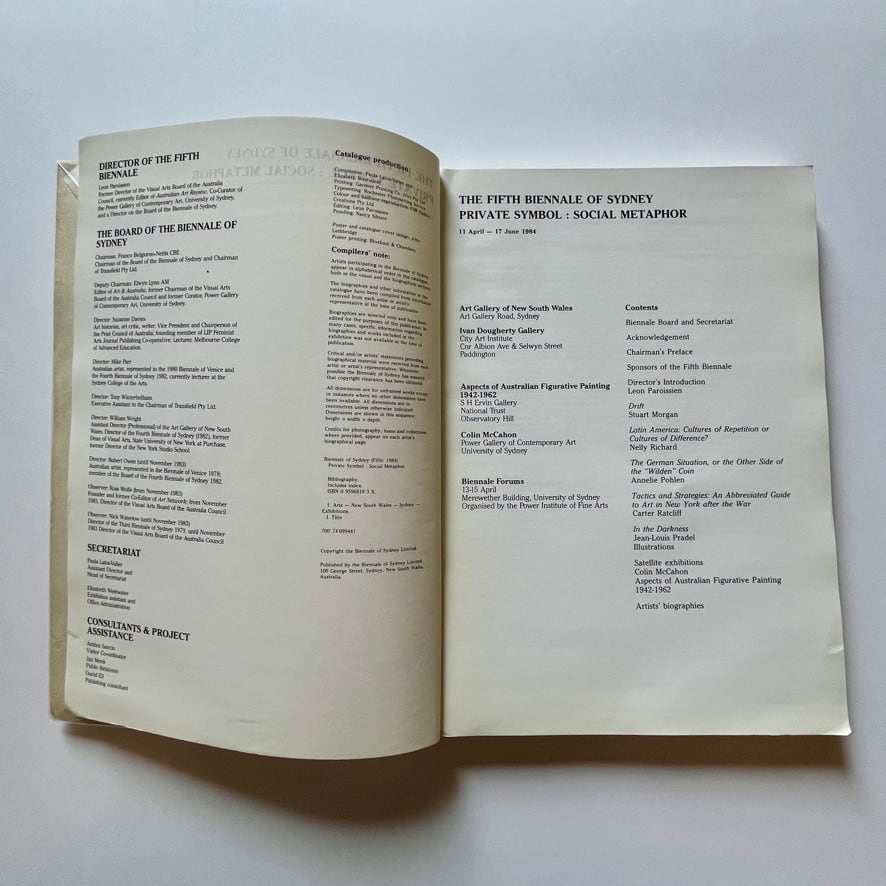1984年、第5回 シドニービエンナーレ 「プライベートシンボルと社会的メタファー」のカタログです。