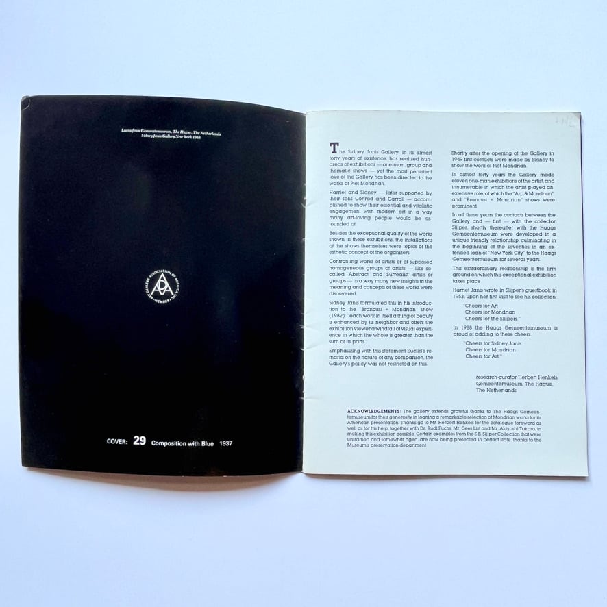 モンドリアンのオランダ、ハーグ市立美術館所蔵の絵画と素描を展示するアメリカ初の展覧会としてシドニー・ジャニスギャラリーで開催された展覧会のカタログ。