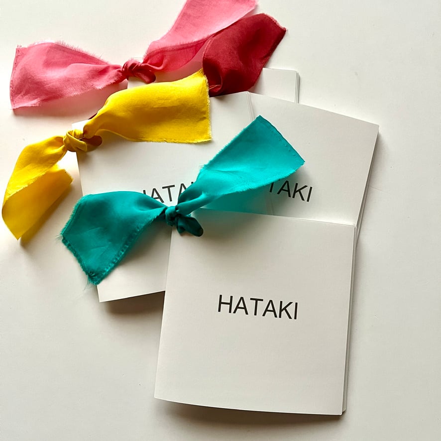 装丁:ソフトカバー ハタキの短冊=リボン(Silk)で留めています