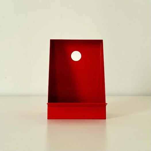 選び抜かれた赤色もとても魅力的。壁にかけることもできます。また小物入れとしても使えます。