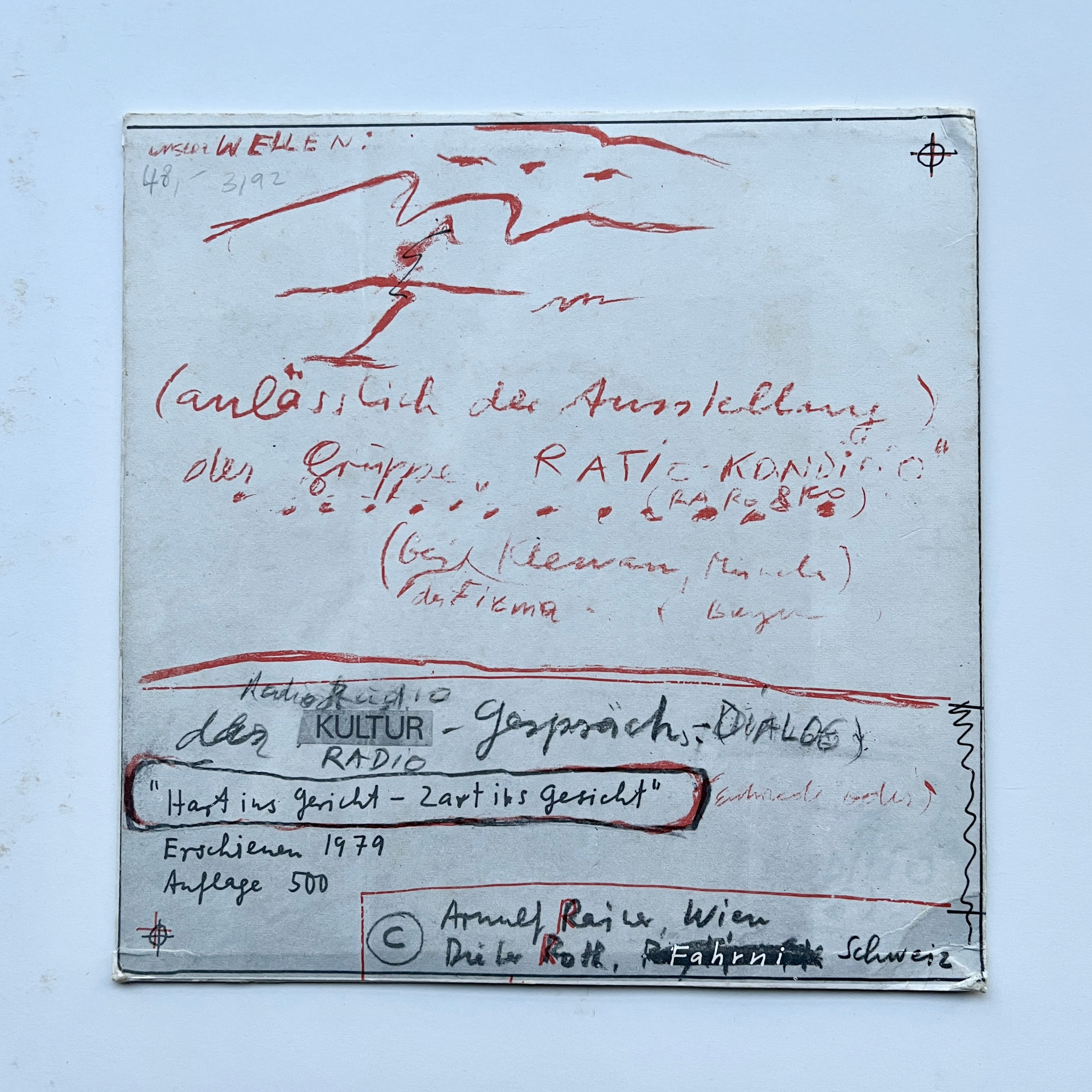 500枚限定で自主制作。このレコードには、ミュンヘンのギャラリー・クレヴァンで開催された展覧会「Misch und Trennkunst(ミッシュ・ウント・トレンクンスト)」の企画について、アルヌルフ・ライナーとディーター・ロートの対談が収録されています。