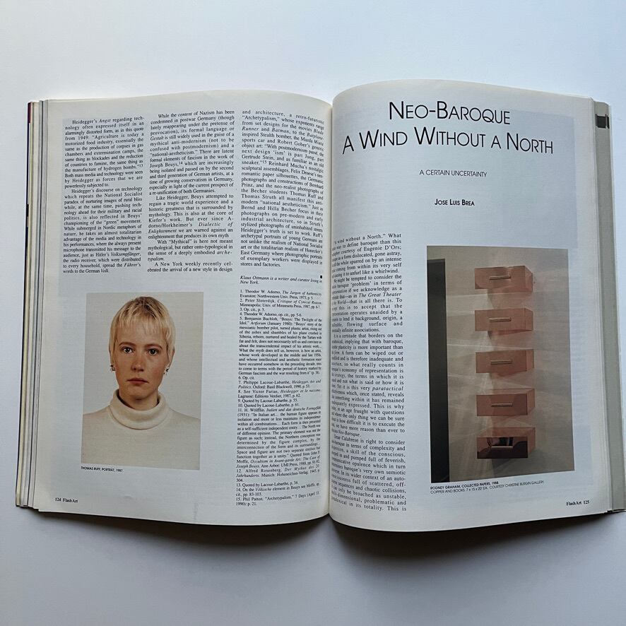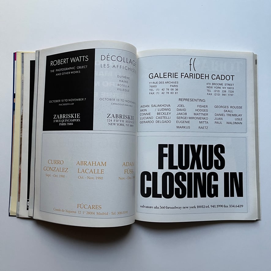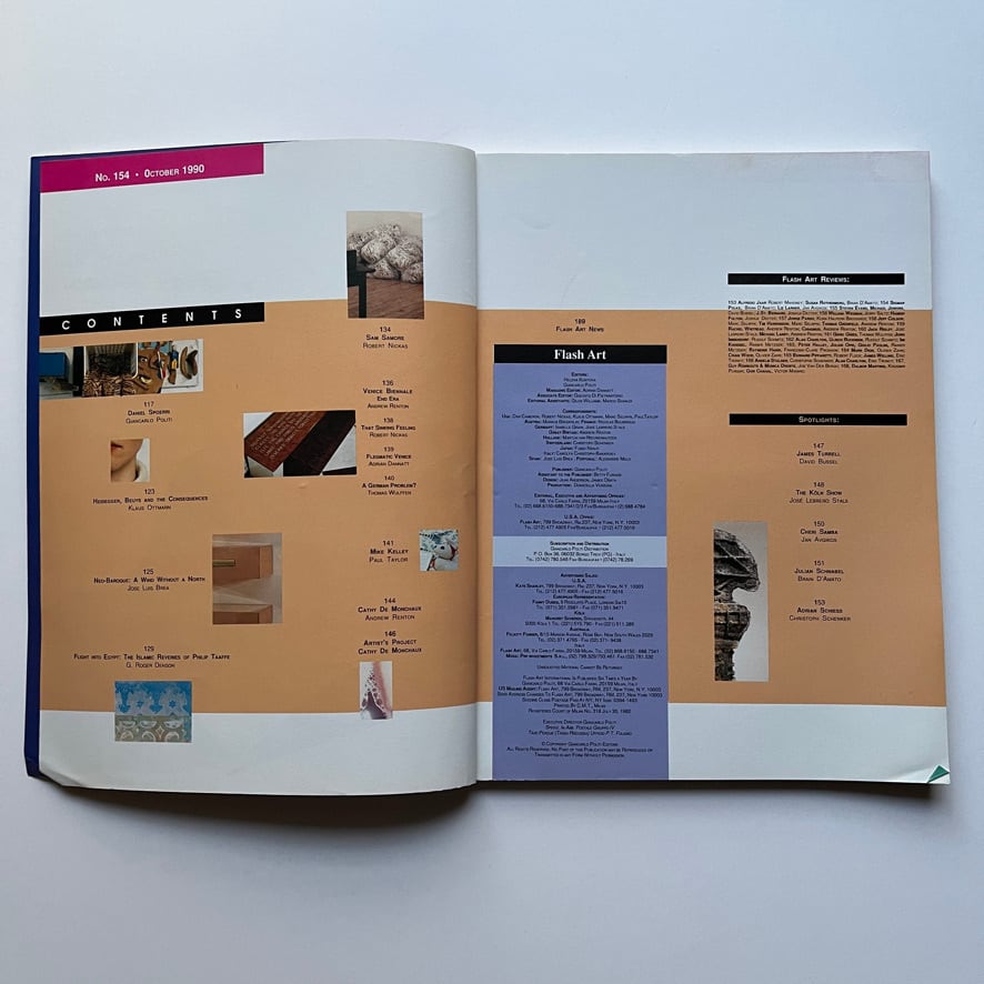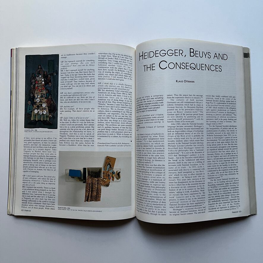 この頃のアート雑誌は広告の量が雑誌の2/3くらいあって、記事はどこ?と探すようなメディアなのですが、この号ではダニエル・スポエリのインタビューが6ページに渡り掲載されています。