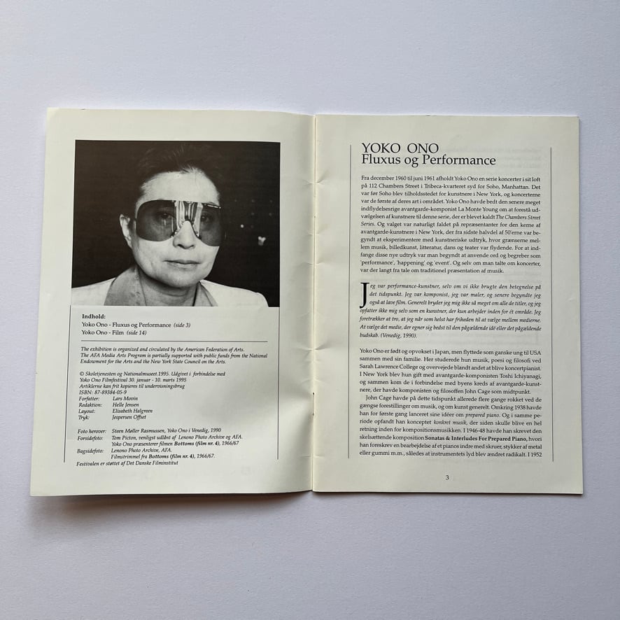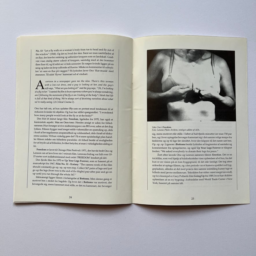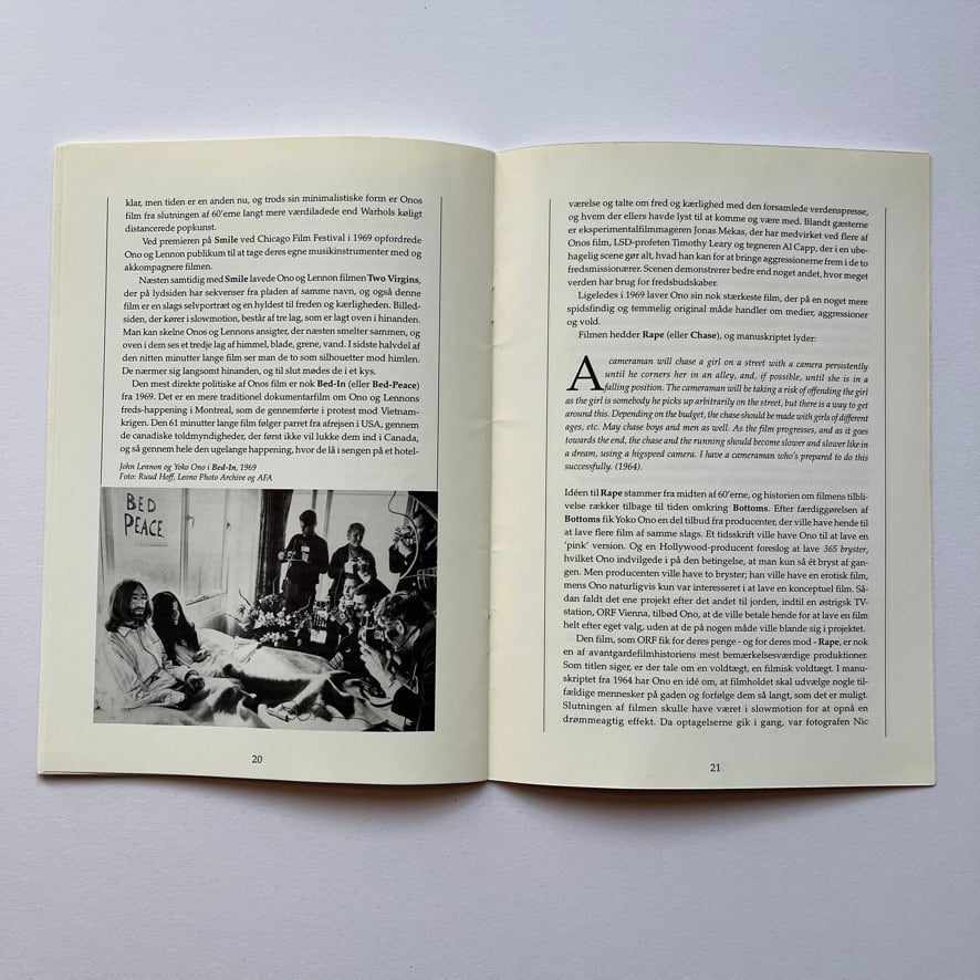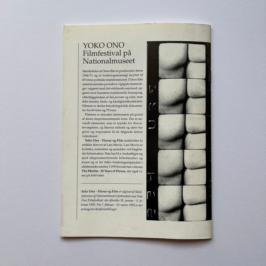 ヨーコの映画作品はフルクサス運動の典型的な要素を用いており、実験的なアプローチが興味深いものです。この薄い冊子には、Lars Movinによる2つの論文が掲載されています。