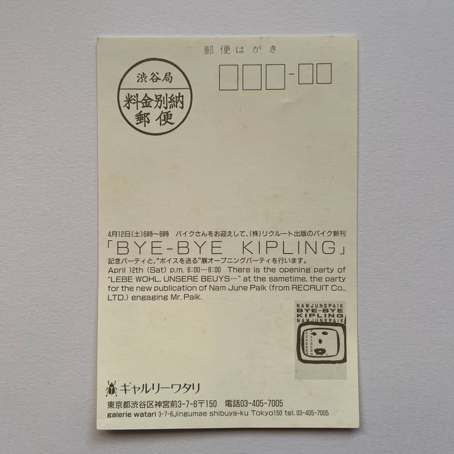 坂本龍一、キース・ヘリング、ルー・リードなどが参加するという豪華な顔ぶれでした。。Nam June Paik Bye Bye Kipling で検索すると動画が見つかると思います。