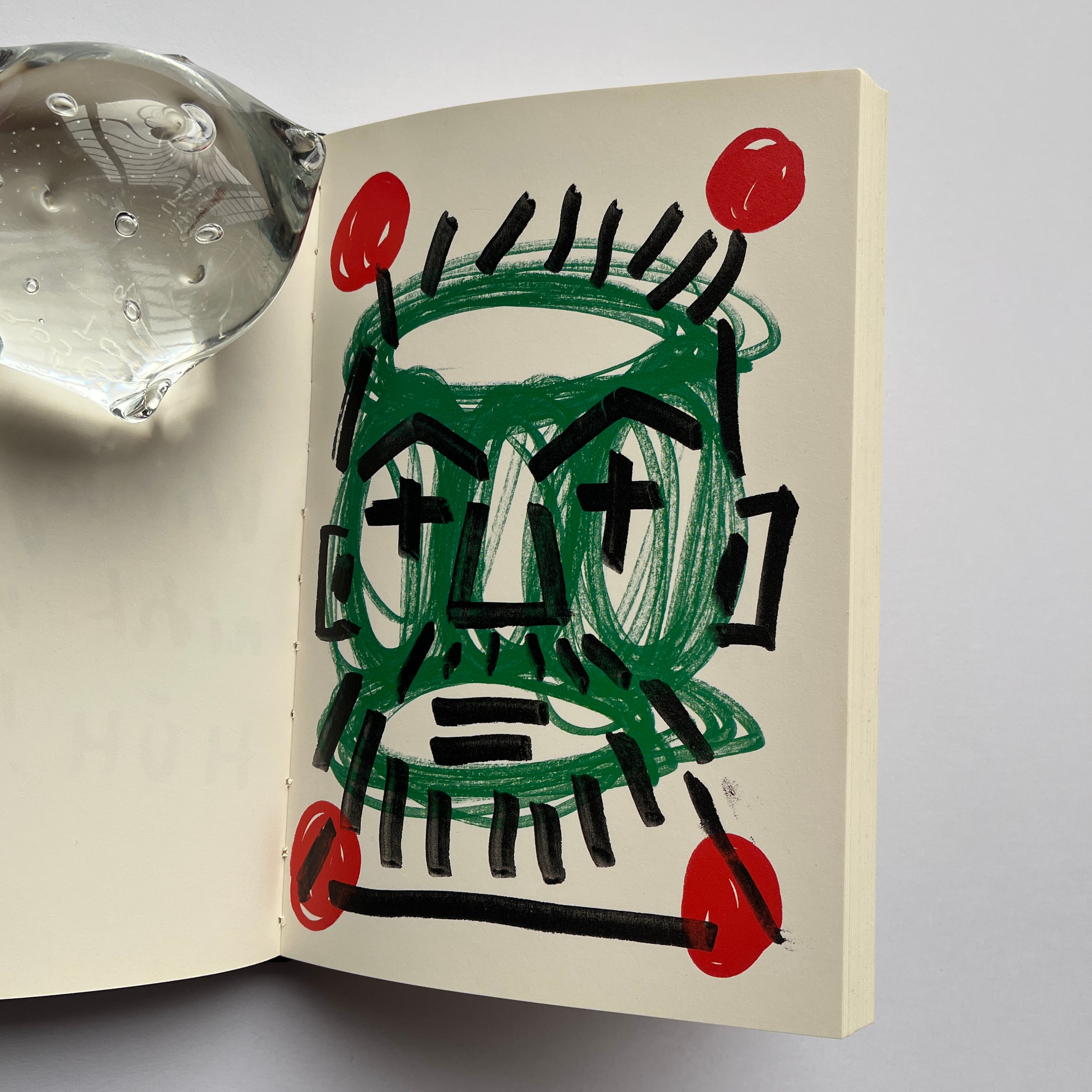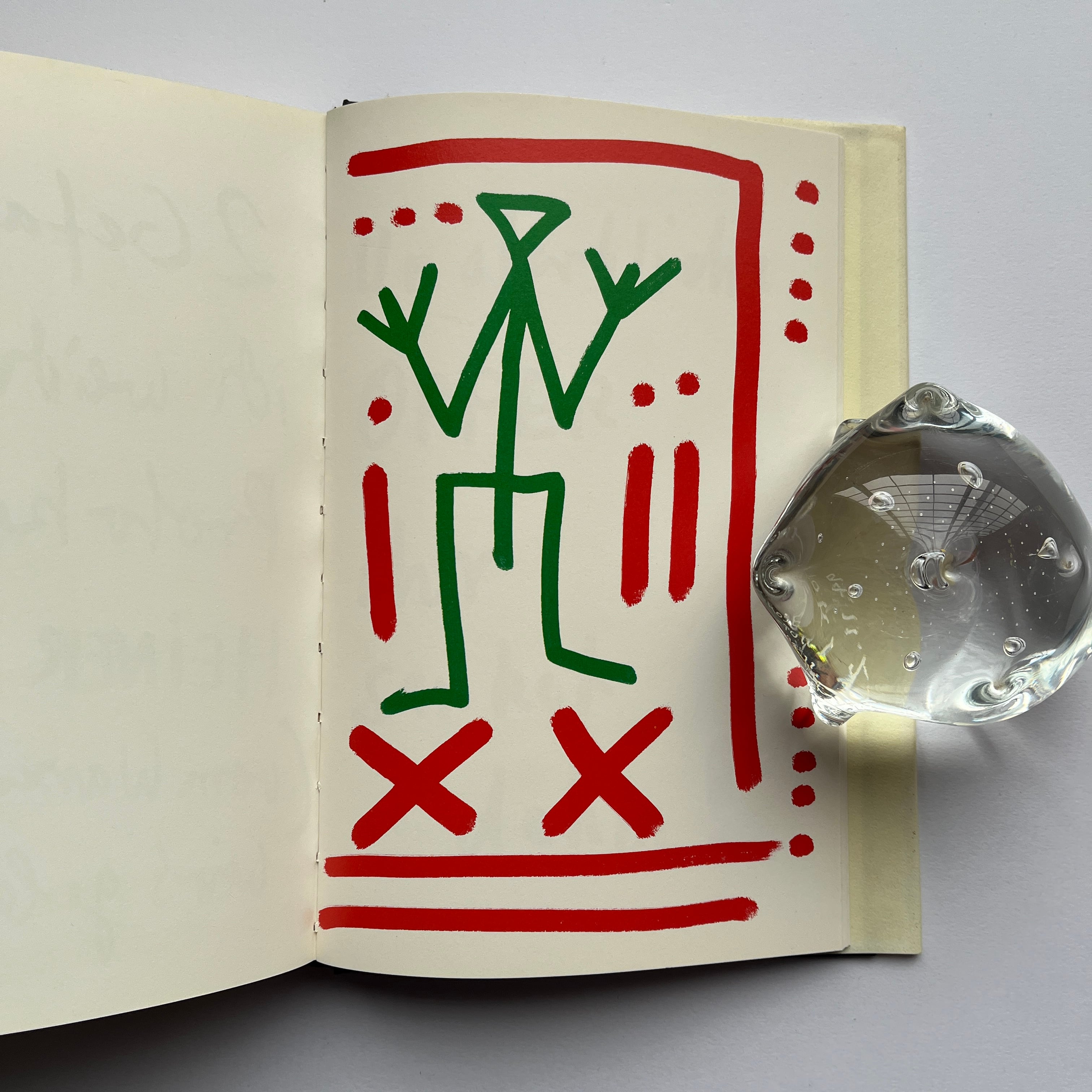 1ページに一枚(片面にのみ)、原色でカラフルなドローイングが詰まっています。まさにペンクのアーティストブック。最初の前書きの部分も、ペンクの筆跡のままのテキストでボリュームありです。