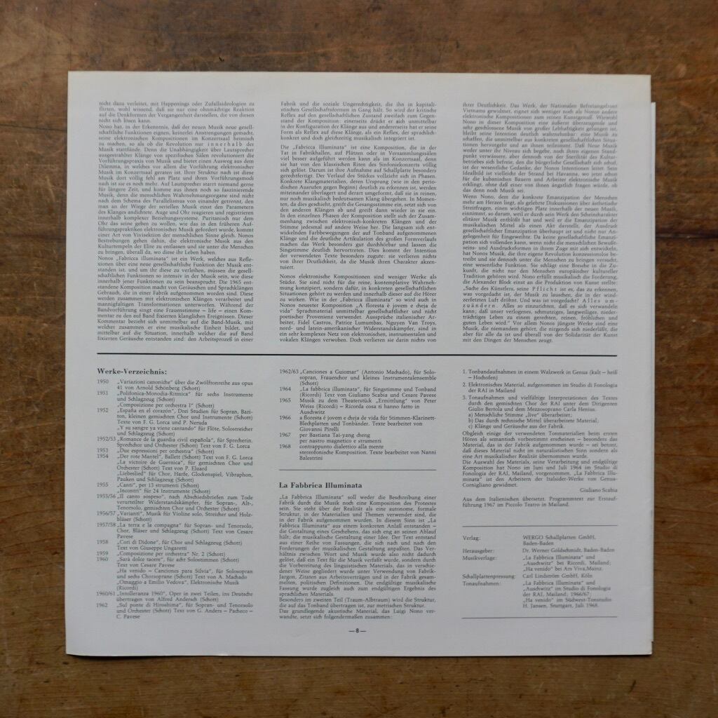 ノーノの国内版・帯付きでジャケットにシール(wergoの楕円のシール?)の跡ののようなヤケがあるもののコンディション大変良いです。