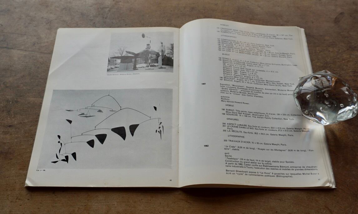パリの国立近代美術館とニューヨークのグッゲンハイム美術館で開催された1965年のカルダー回顧展のカタログ。リトグラフ入りで、大判ななので額に入れても美しい。