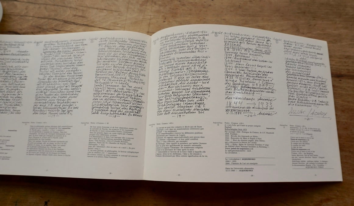 ドイツ語もフランス語も自由に読める訳では無いので、正確には何が書いてあるのかわからないのですが、ダルボーフェンの仕事は、記述の蓄積が膨大に積み上がることによって、時間の塊のようなもうのが表出していて、ボイスの作品を初めて見た時のような不気味さ・・・不気味さと言っても怖いというのではなくて初めて体験する事に出くわした時に感じる怖さみたいなものが自分の中に立ち現れて来ます。