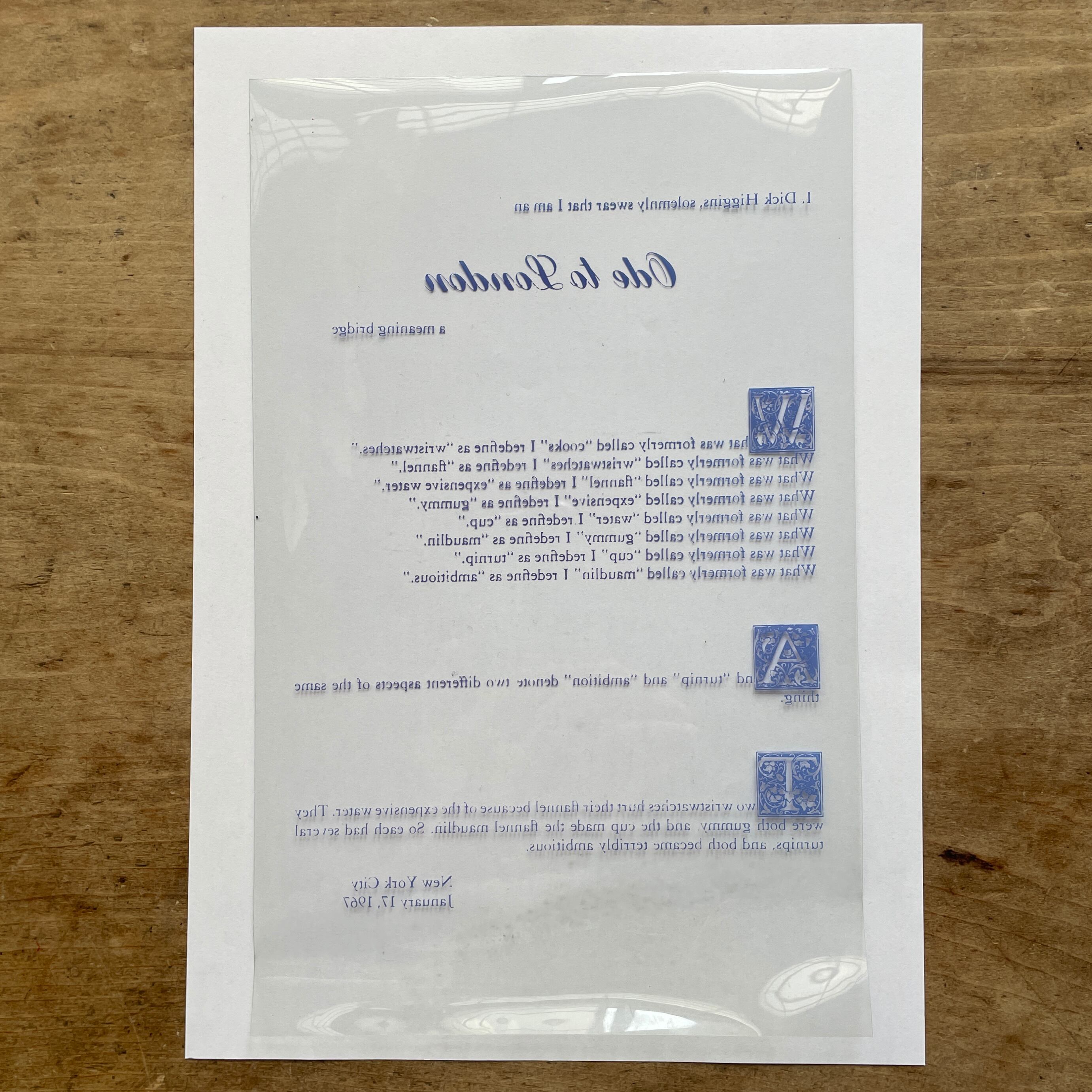 装丁:透明なセルのシートにラベンダー色でシルクスクリーン印刷されたこの作品