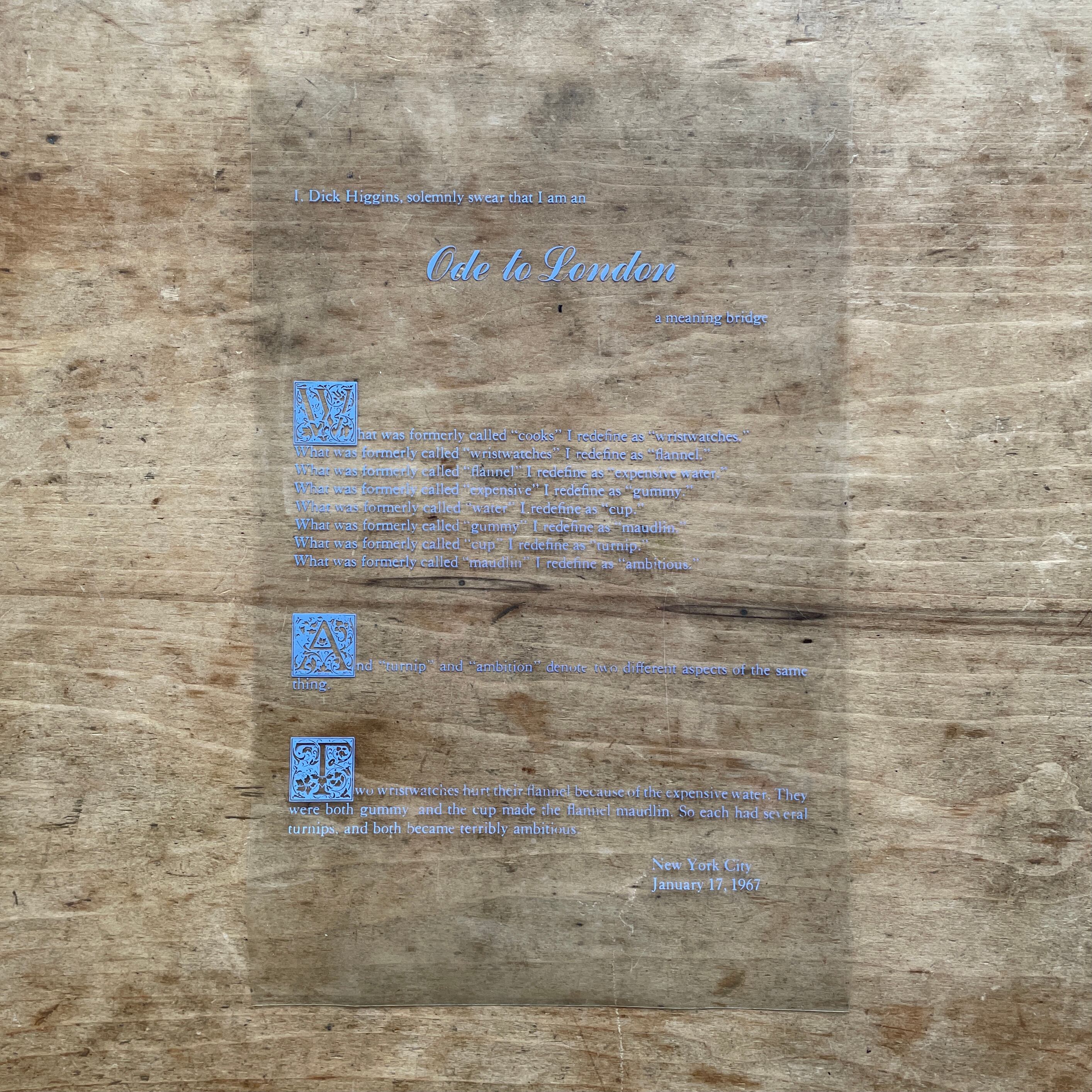 ディック・ヒギンズは、フルクサス関係の出版物を多く発行している、サムシング・エルス・プレスSomething Else PressとプリンティッドエディションズPrinted Editionsの創設者です。