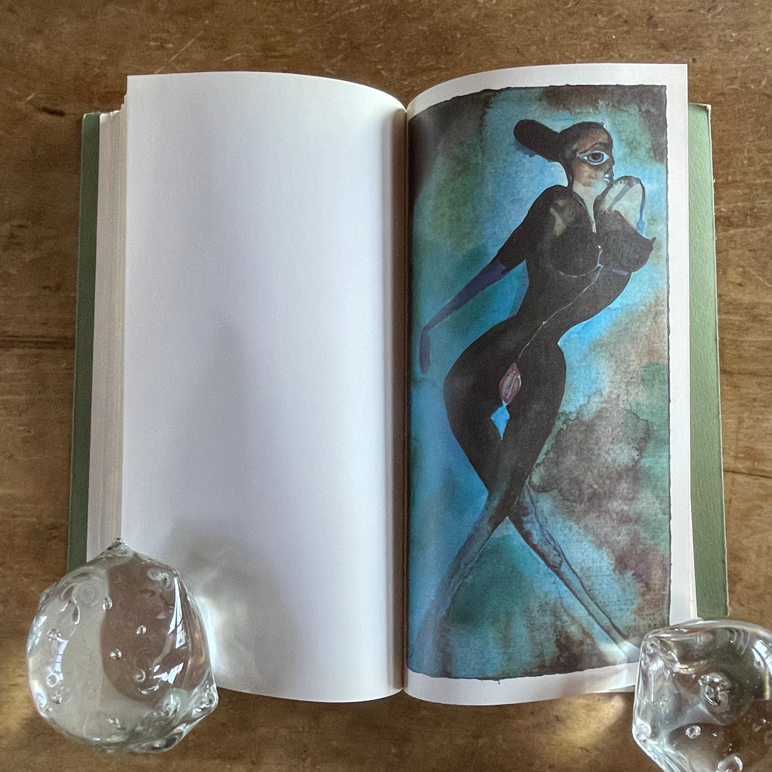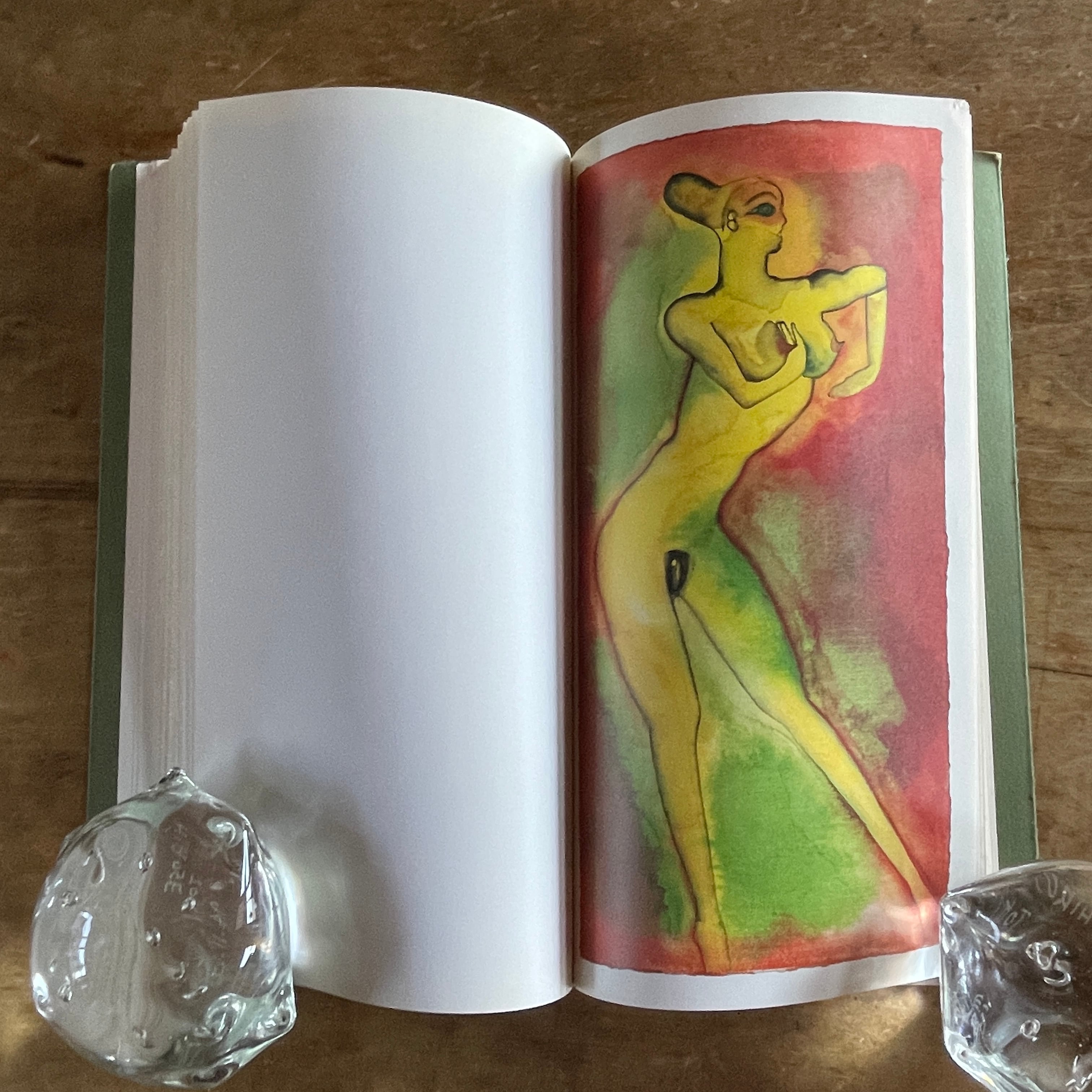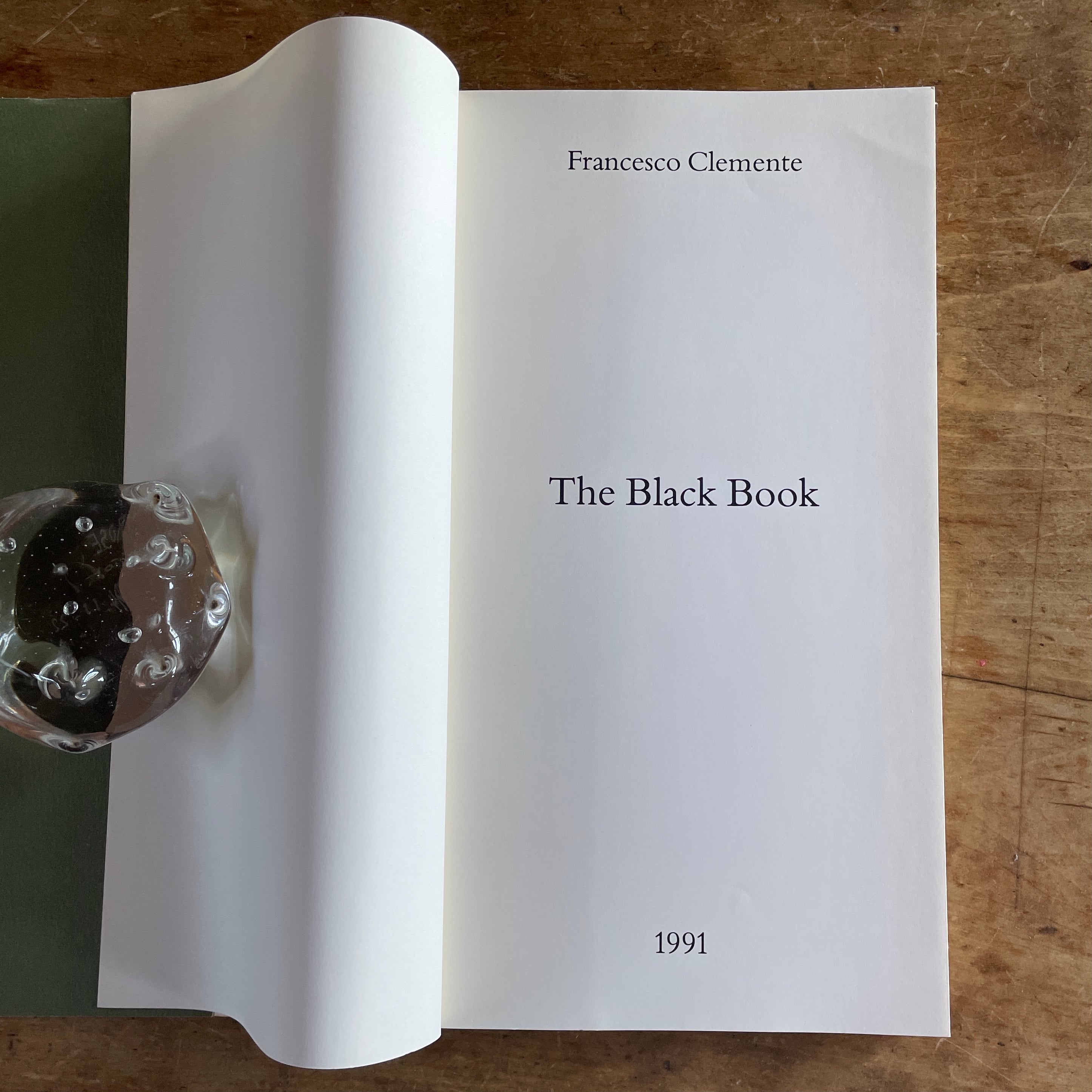 104ページの縦長の本で、上下の小口はカットされていますがアンカットのようになっているページ作り。グリーンのダストカバーは「Francesco Clemente THE BLACK BOOK」のエンボス加工がされています。