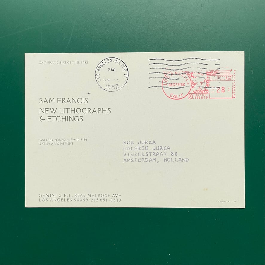 1982年にGEMINI G.E.L.で開催されたサム・フランシスの展覧会「新作リトグラフとエッチング」の展覧会インヴィテーションカード