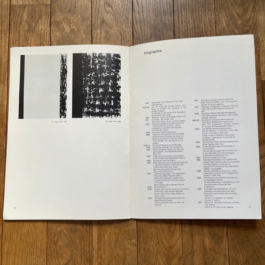 1980年11月から1981年の1月にパリのポンピドゥセンターで開催されたバーネット・ニューマンの展覧会カタログ