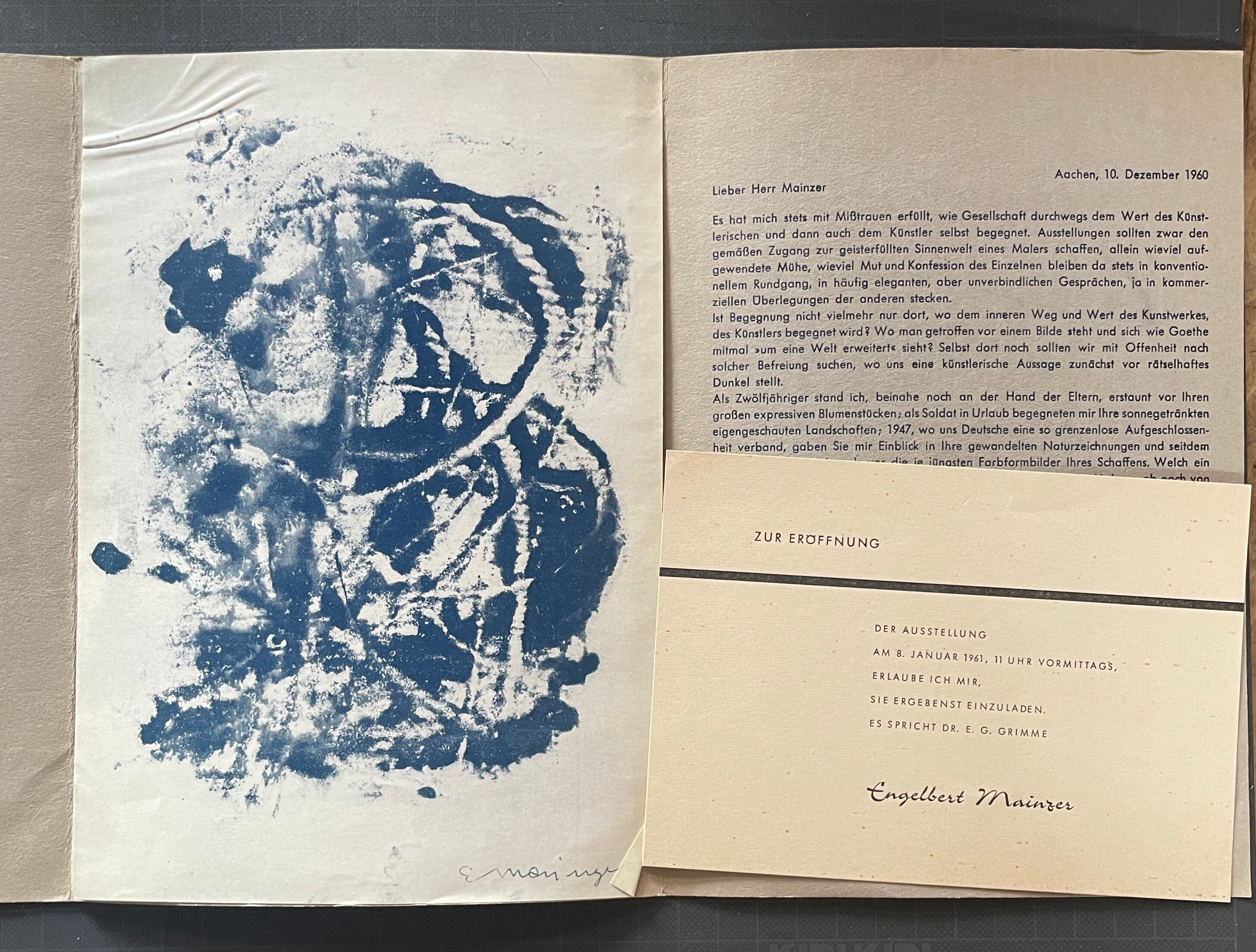 The Aachen Museum Association and the Suermont Museum of the City of Aachenで1961年に開催されたエンゲルベルト・マインツァー Engelbert Mainzerの展覧会 パンフレットとインヴィテーションカード