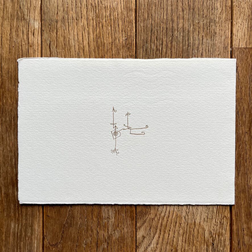 このカードは1993年のものなので、コンラート・フィッシャーは共同事業を離脱している頃です。このカードのサイズに漉いた紙でできていて、金色のインクで、オンターニの特徴である展覧会タイトル Agnostic Agni Lionia (と読むのかしら?)が刷られています。