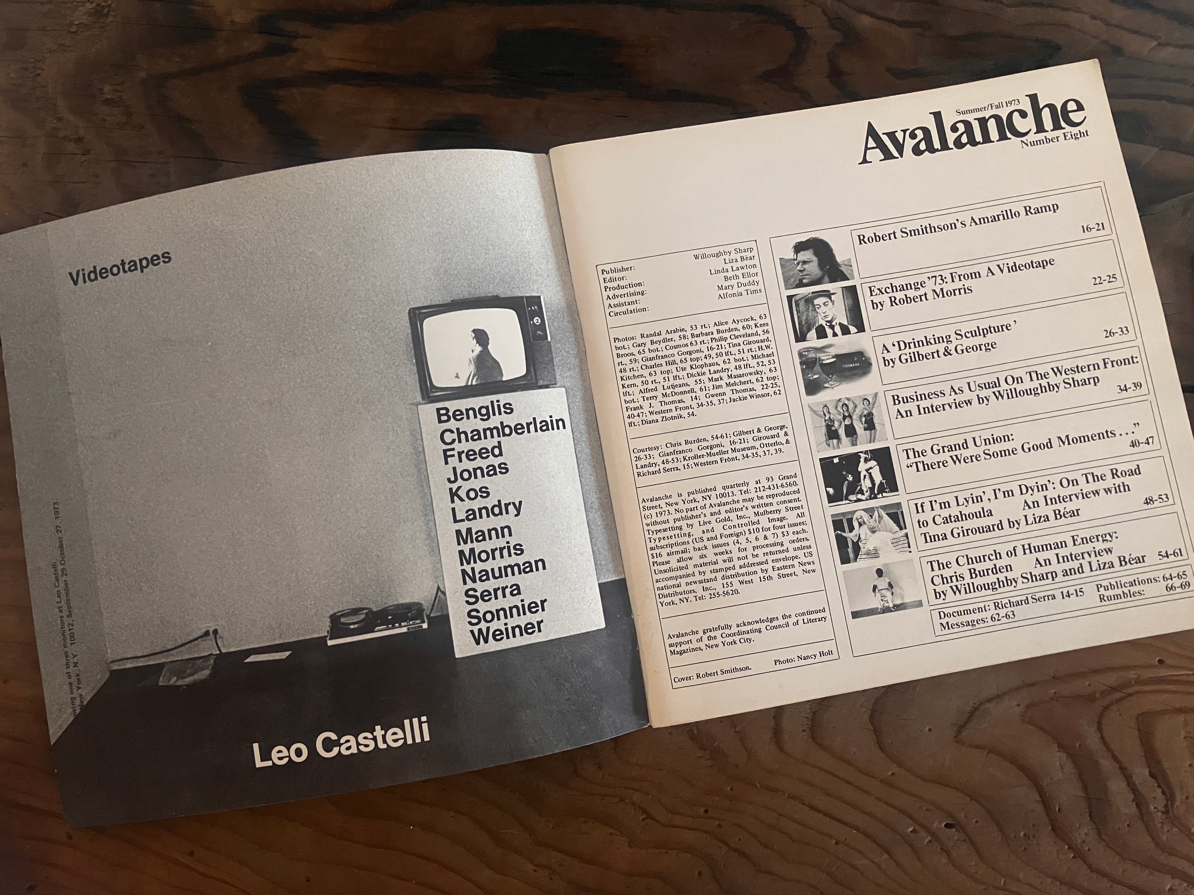 1970年から76年にかけて刊行された不定期の刊行物。当時ニューヨークを拠点に活動していたインディペンデント・キュレーターのウィロビー・シャープと編集者のリザ・ベアによって計13号が刊行されたレアブック。